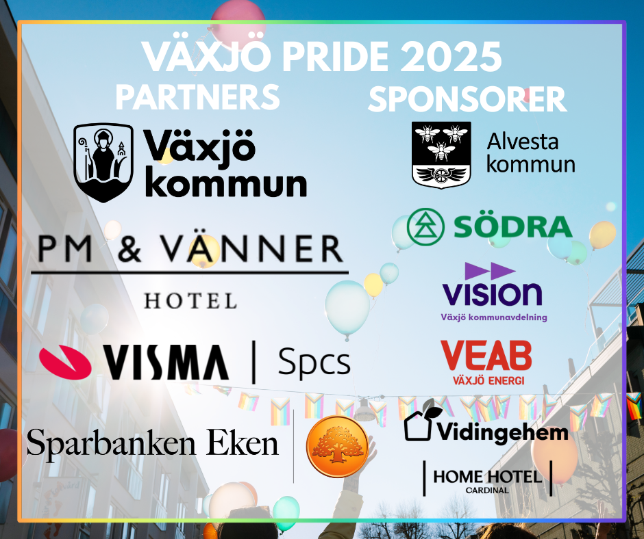 Växjö Pride 2025 hade inte varit möjligt utan ert stöd. Med ert engagemang har ni visat att regnbågen hör hemma i hela vår stad.