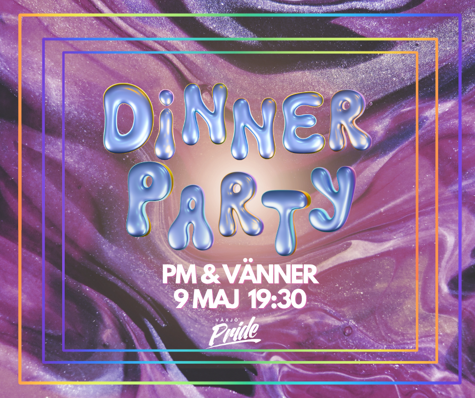 Biljetter: https://www.biljettkiosken.se/event/260509-vaxjopride-dinner_party_2026